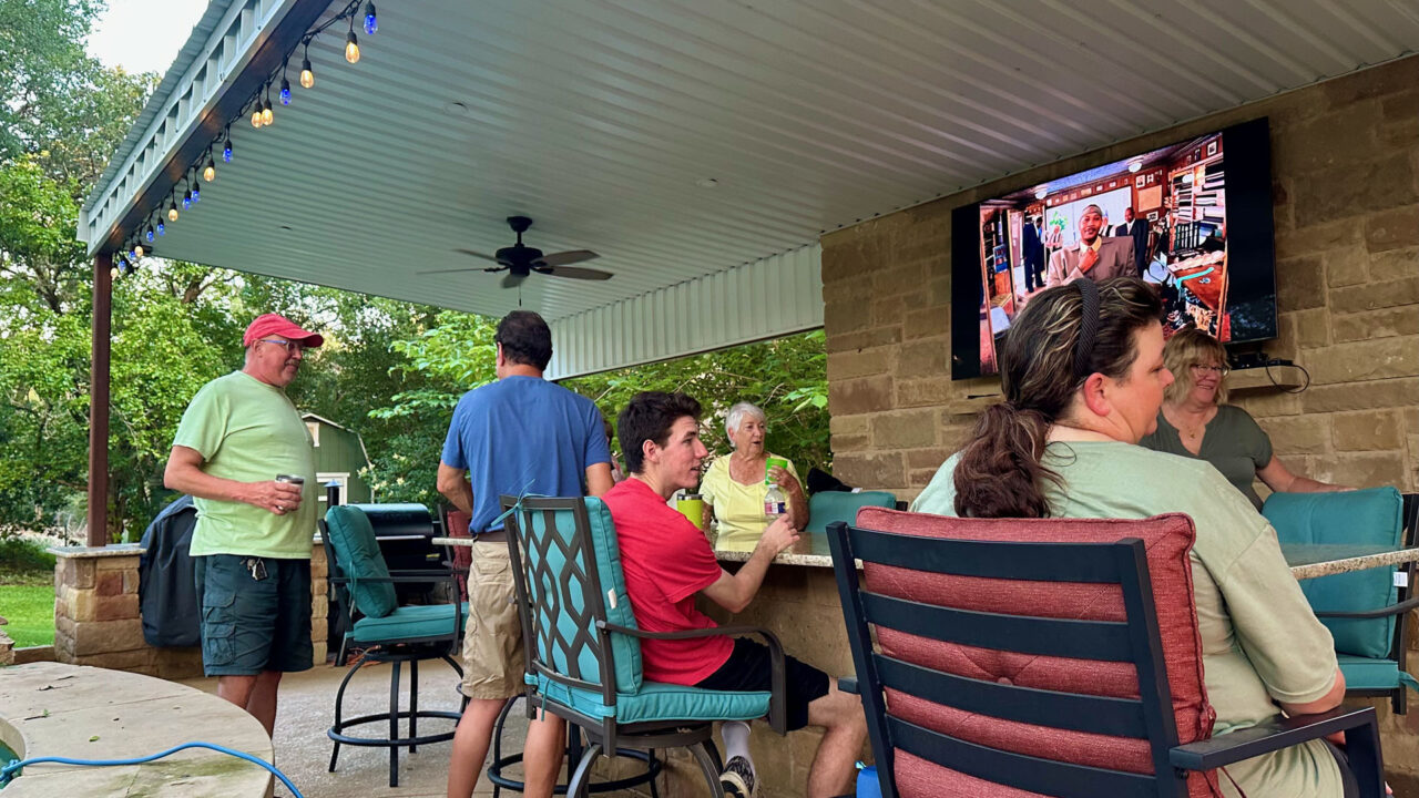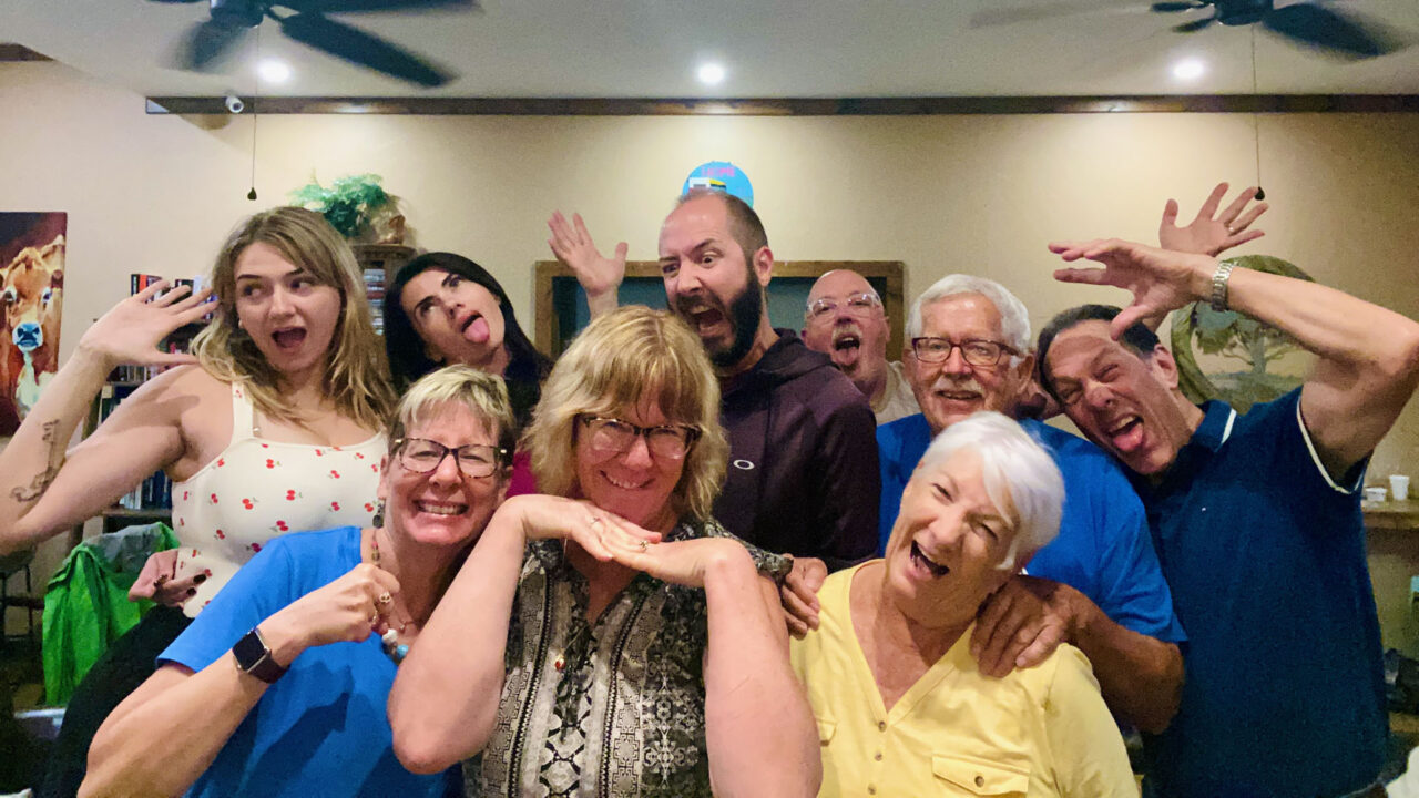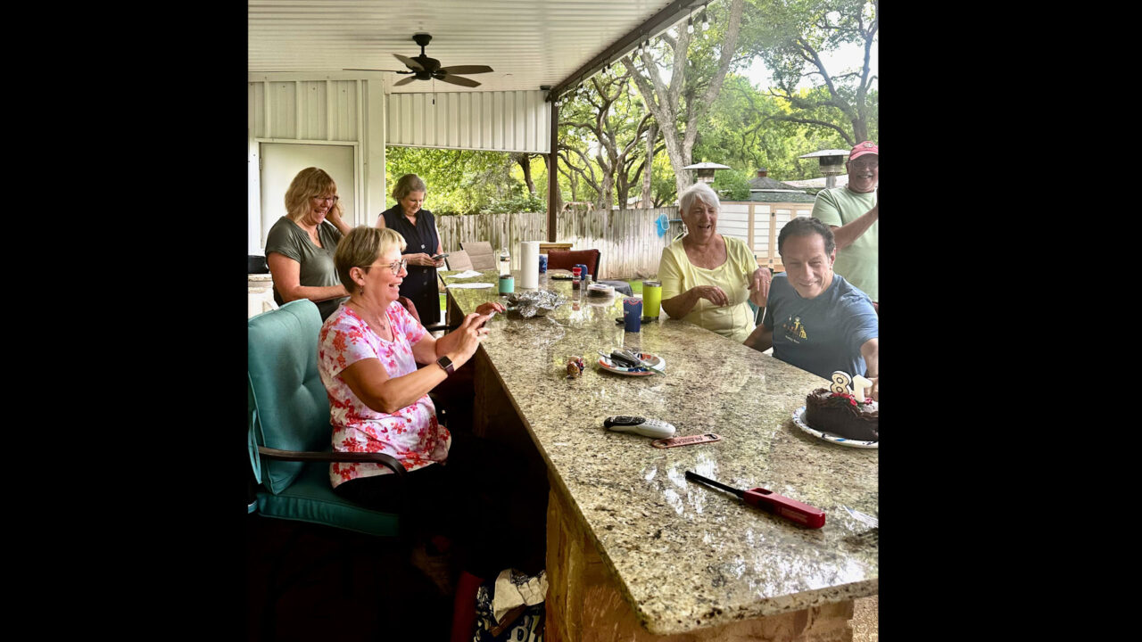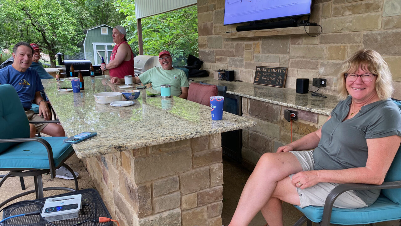 The following day, Sunday, May 12th, (2024), was Mother’s Day, and it rained down hail in the morning… some was golf-ball sized!! So loud when it hit the roof of our tiny home! Luckily no damage that we could tell. The Tise family made the trip from Austin to spend Mother’s Day with us. So fun to have one more opportunity to see them before we leave Texas. It was a rainy day so luckily we had access to the club house at the campground. We chatted, ate, drank, walked the campground in between rain drops, and played games.