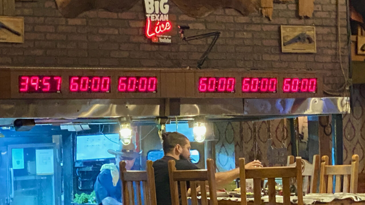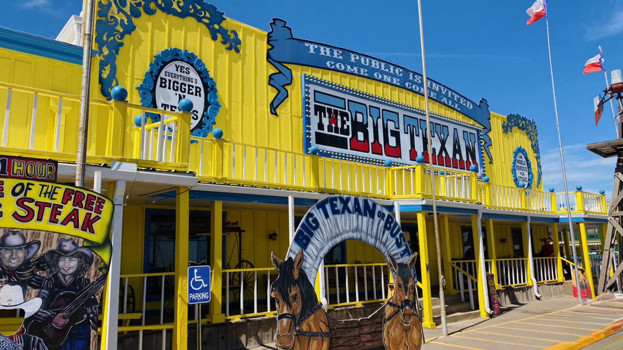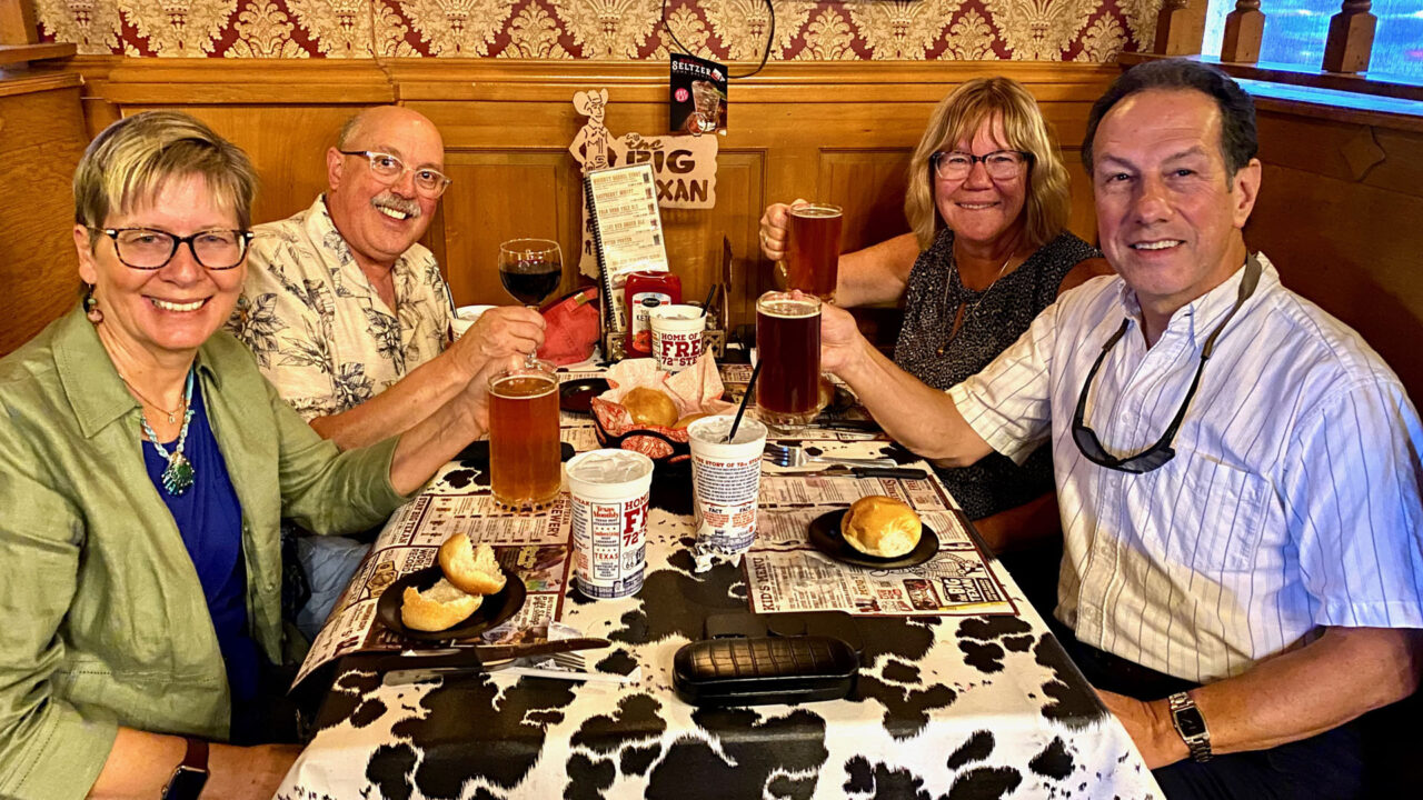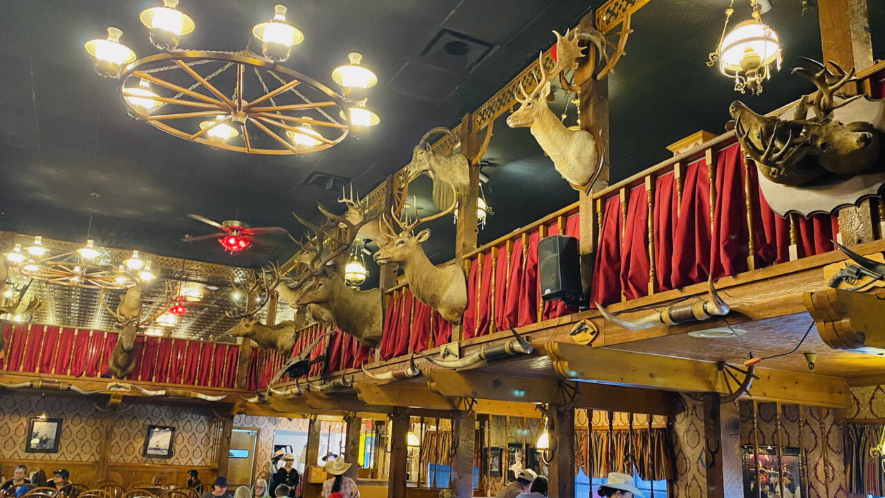 We enjoyed “linner” at The Big Texan Steak Ranch in Amarillo. A “must” when in this area! In 1960, R. J. “Bob” Lee opened his restaurant on Route 66, the “Mother Road”. Its distinctive architecture (including mounted animal heads throughout the dining room) soon became recognized across the Mother Road as a good stopping place for great steaks grilled over an open flame. The Big Texan is famous for the “FREE 72 oz steak challenge”, which includes eating a salad, baked potato, 3 shrimp and 72 ounces of beef in one hour. None of us tried that although there was one diner who did. He was seated on an elevated platform so everyone could watch while the clock counted down the 60 minutes. If he finishes, he gets his dinner for free. The countdown clock showed about 20 minutes left. We did not stick around to see the outcome. Even without attempting to eat a 72 oz steak, we all had enough leftovers for dinner another night! A fun experience!