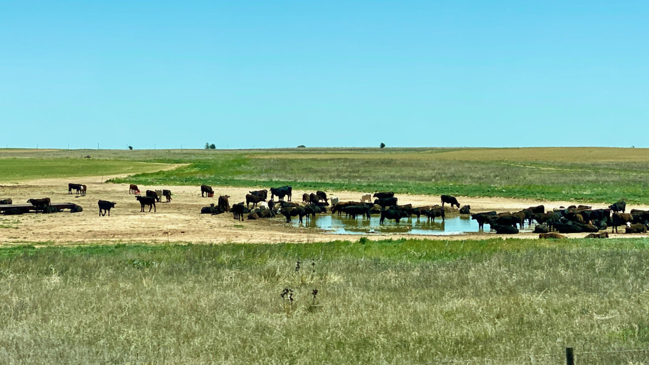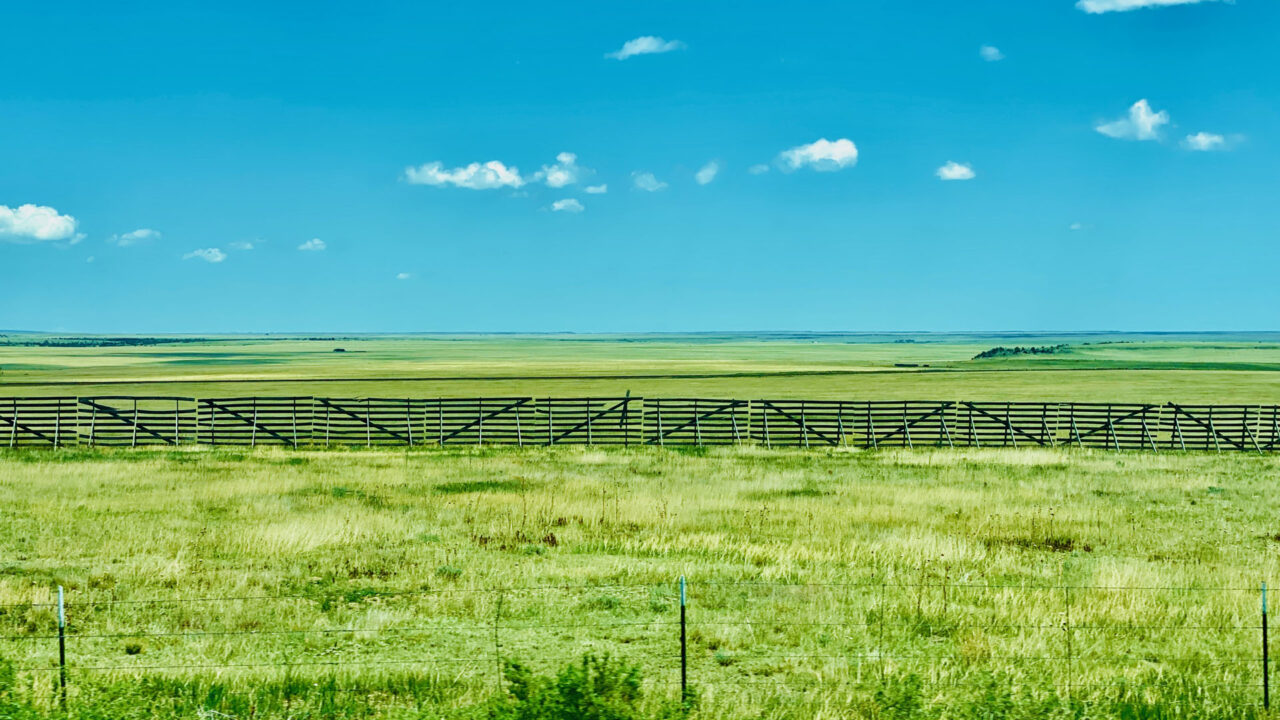 We drove 226 miles northwest mostly on I-87 and arrived at Raton KOA Journey in Raton NM for one night. Temps were a comfy 70 degrees. Quite a change from near 100 degrees yesterday in Amarillo. Along the drive we saw lots of cattle grazing, snow fences, several trains with over 100 freight cars, big silos everywhere and even snow-capped mountains in the distance! The campground was perfectly comfortable for an overnight stay. I even gave Gary a haircut in the afternoon. Now to get used to Mountain Time Zone…