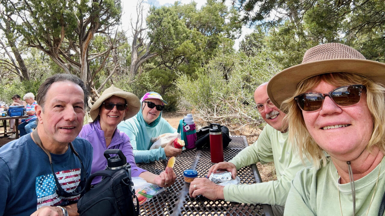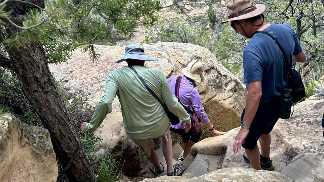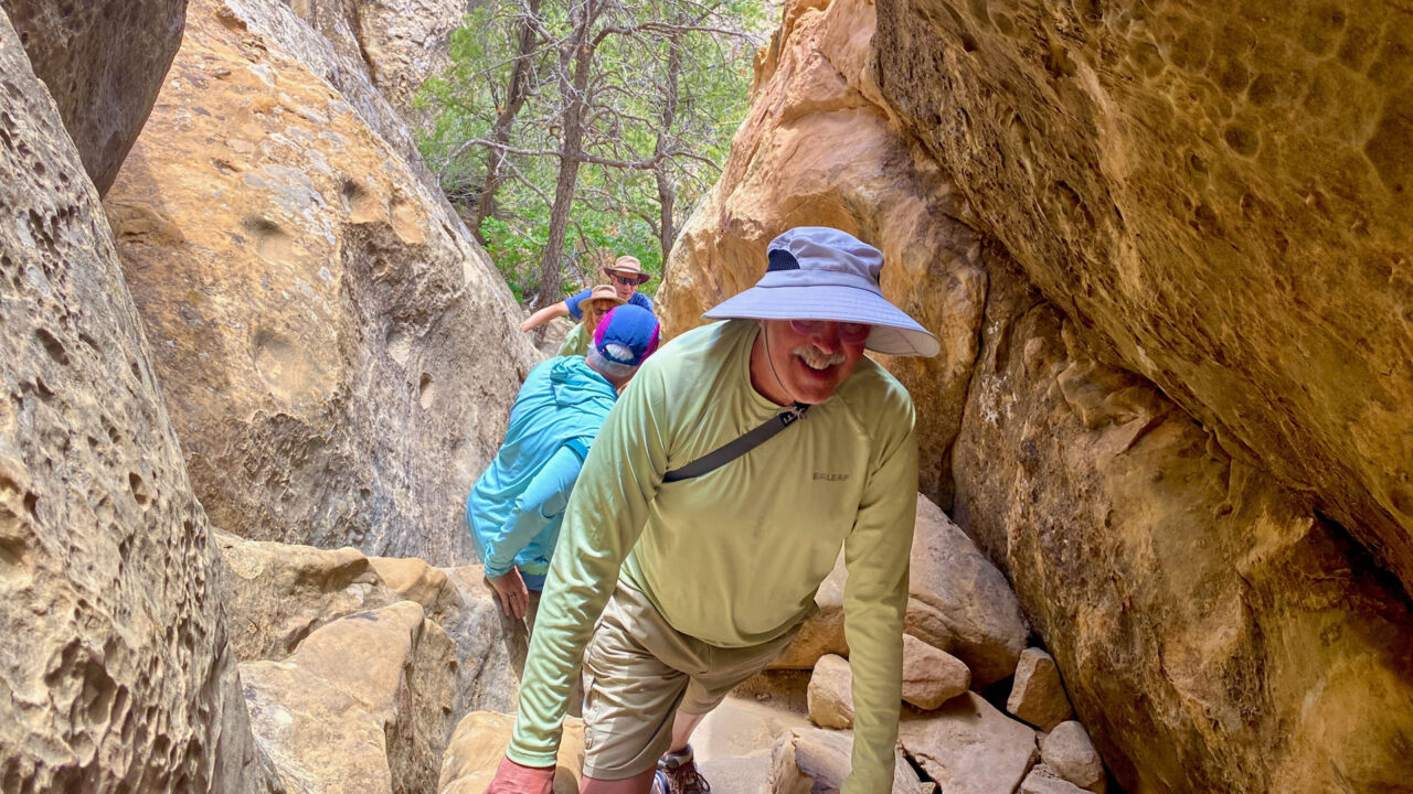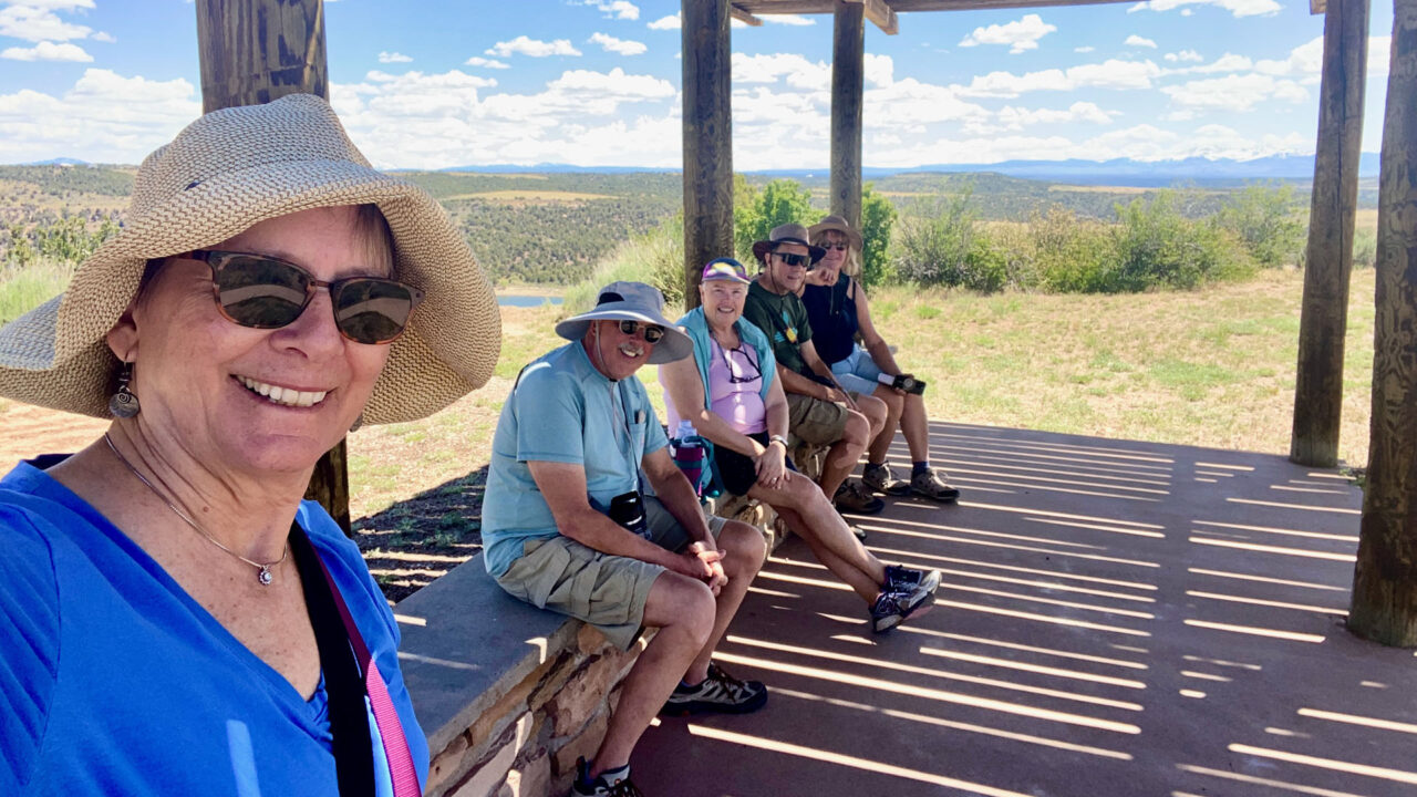 Our expanded pod of five spent 2 days exploring Mesa Verde National Park. Spanish explorers called this area Mesa Verde, or green table, but it is not a true mesa. The landform, a ridge with a steep cliff on one side and a gentle slope on the other is called a cuesta. The park roads were curving and twisting. Our drivers, Gary one day and Cheryl the next, did a great job!