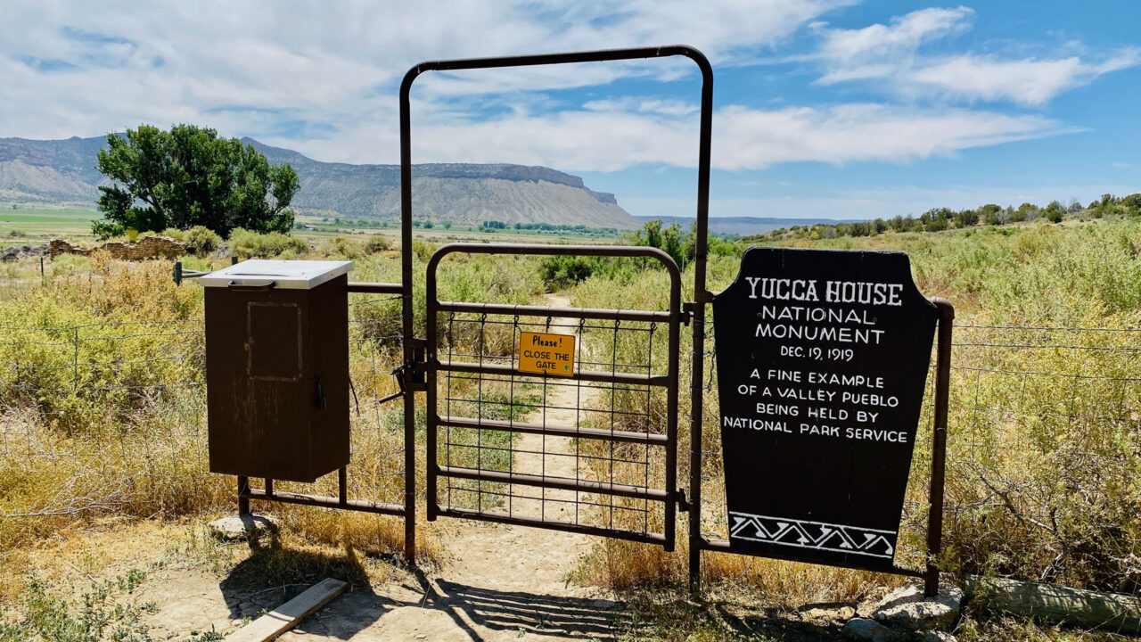 Afterwards we visited Yucca House National Monument… established in 1919. The sign reads “a fine example of a Valley Pueblo…” Maybe that was accurate in 1919 but not so much now! Cheryl had to park the truck in someone’s backyard, then we had to walk thru the spray from a sprinkler to get to the path to walk out and see a partial stone wall which was the only thing left. We continued on the trail to see another falling down relic of a 100-year-old house. Gary stayed behind in the truck to wait this one out!