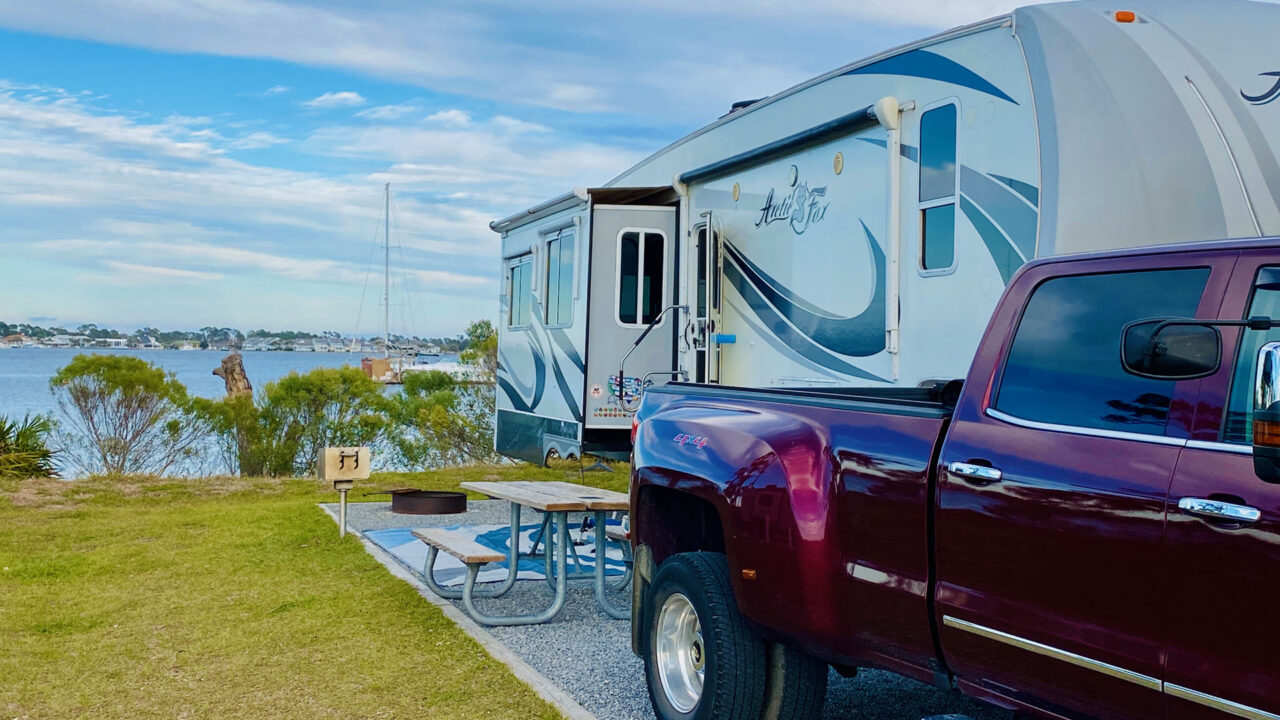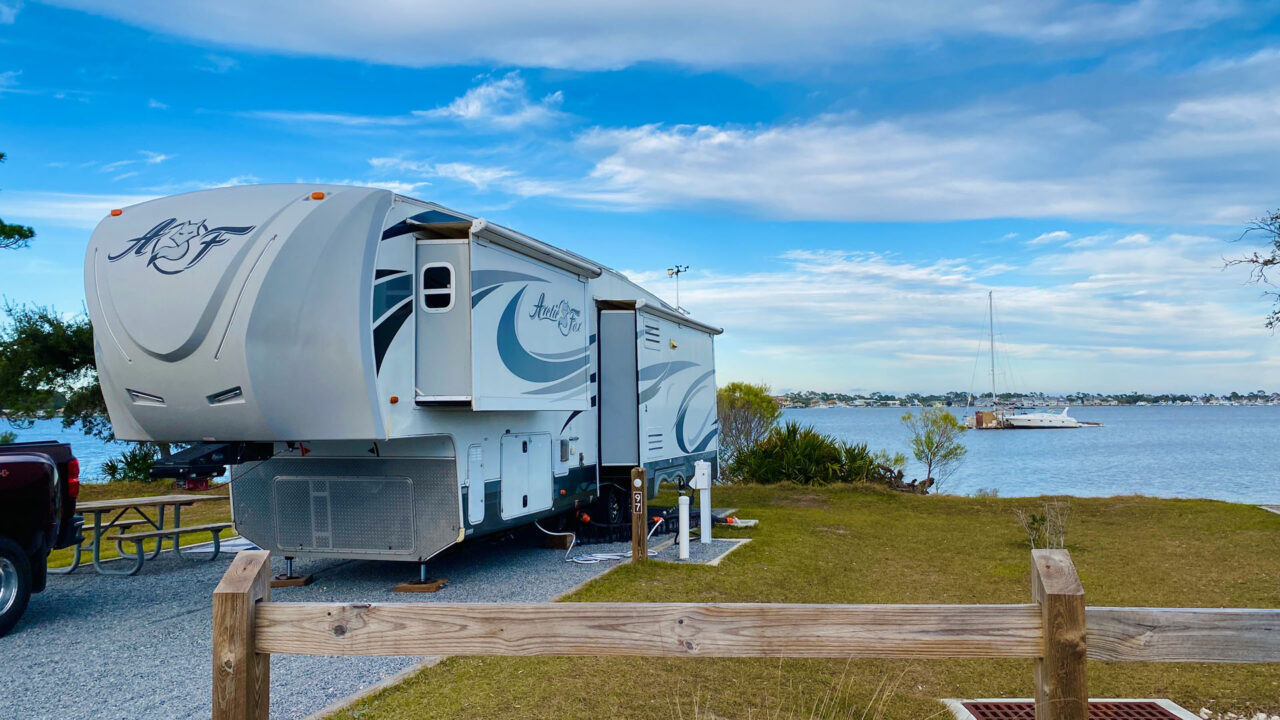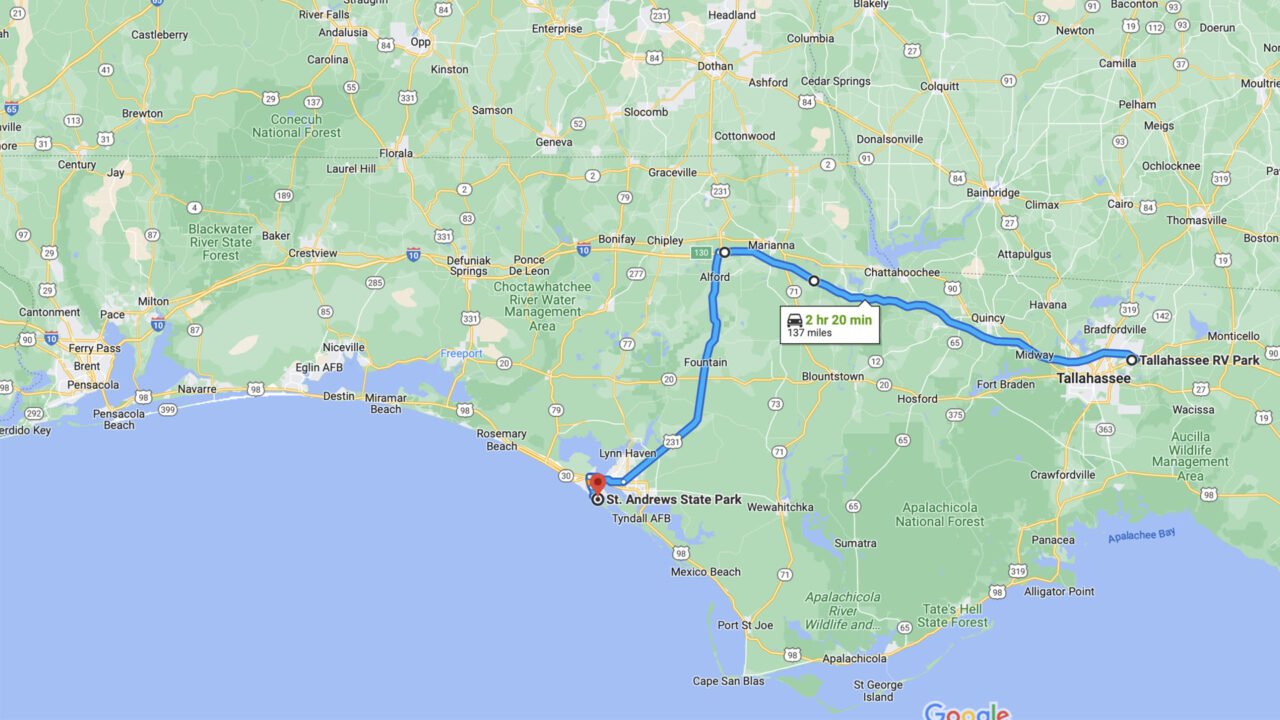 We spent one night in Tallahassee then traveled 137 miles west, stopping at a truck rest area to kill a few hours, before arriving for an afternoon check-in at St Andrews State Park in Panama City FL on Sat., Jan. 6th (2023).