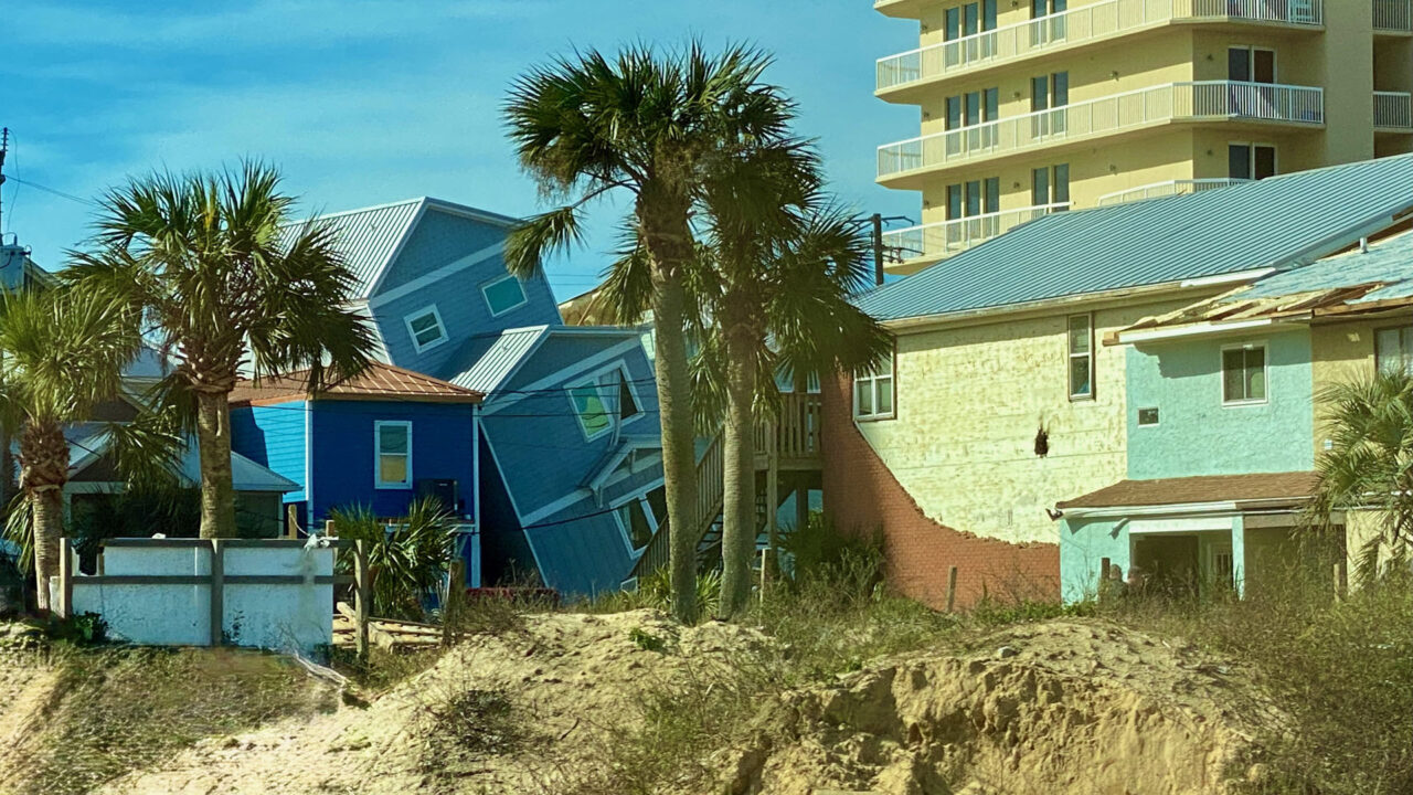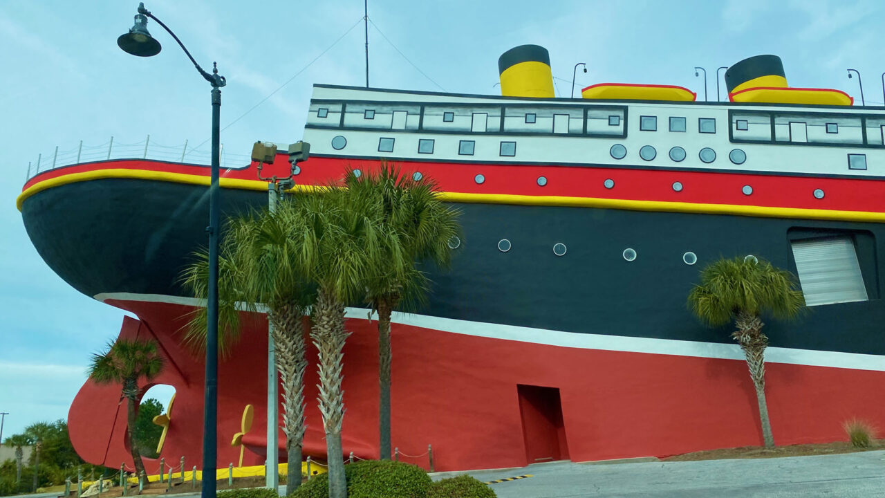 Since we arrived on the weekend, we figured we’d hold off on any sightseeing until during the week when there are less crowds. We grocery shopped and drove past the very colorful “Ripley’s Believe It or Not” in Panama City. On Sunday afternoon I enjoyed a 2.5 mile walk in the state park with glorious views of the Gulf, walking past a capsized boat from a previous storm, the fishing pier, and some very cool looking rental yurt-type structures in the campground. The weather was lovely. Then the bottom dropped out.