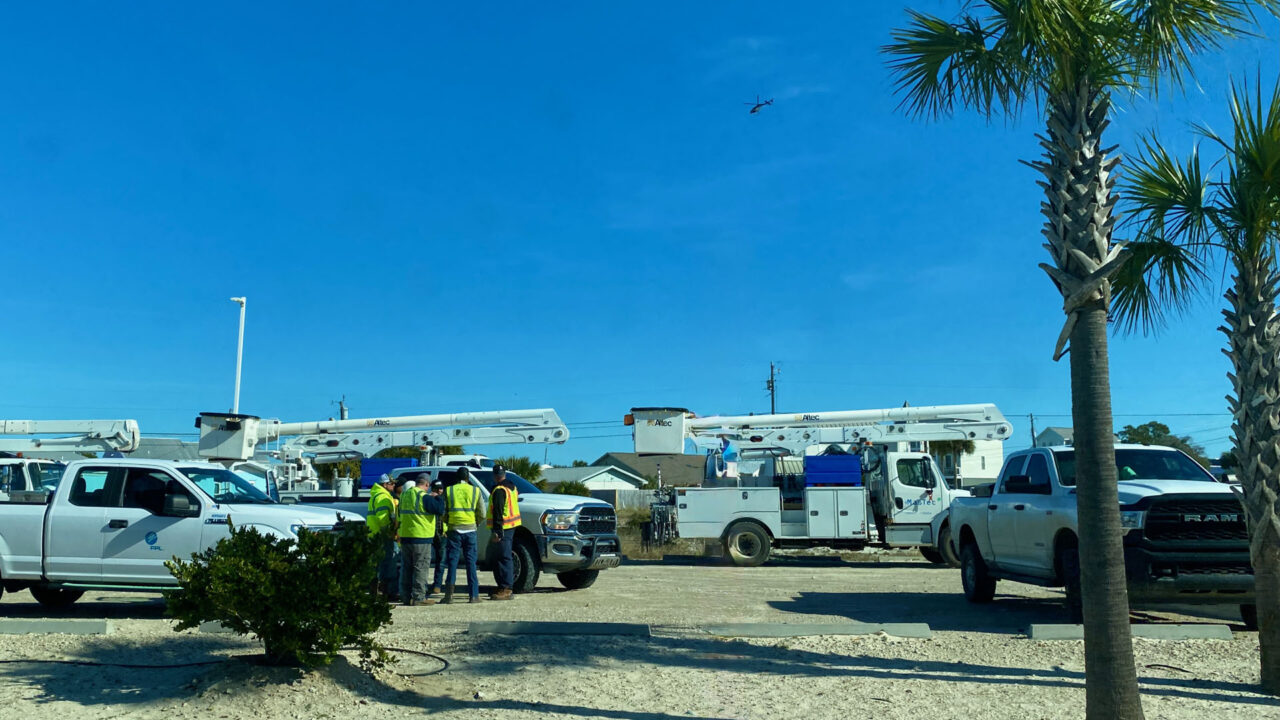 Sunrise brought much calmer weather and no wind. The campground was fine… no damage to trees or RVs. We couldn’t leave the campground easily as there were road closures nearby, plus where would we go anyway. So we just stayed put, took walks in the state park, and managed without electricity. We do have solar capabilities so we were fortunate. The roads were finally re-opened the next morning, and we were able to head to Walmart, and see the damage to houses and infrastructure first hand on Wed., Jan. 10th (2024). We also saw the  hardworking utility workers. The whole thing was so sad.
