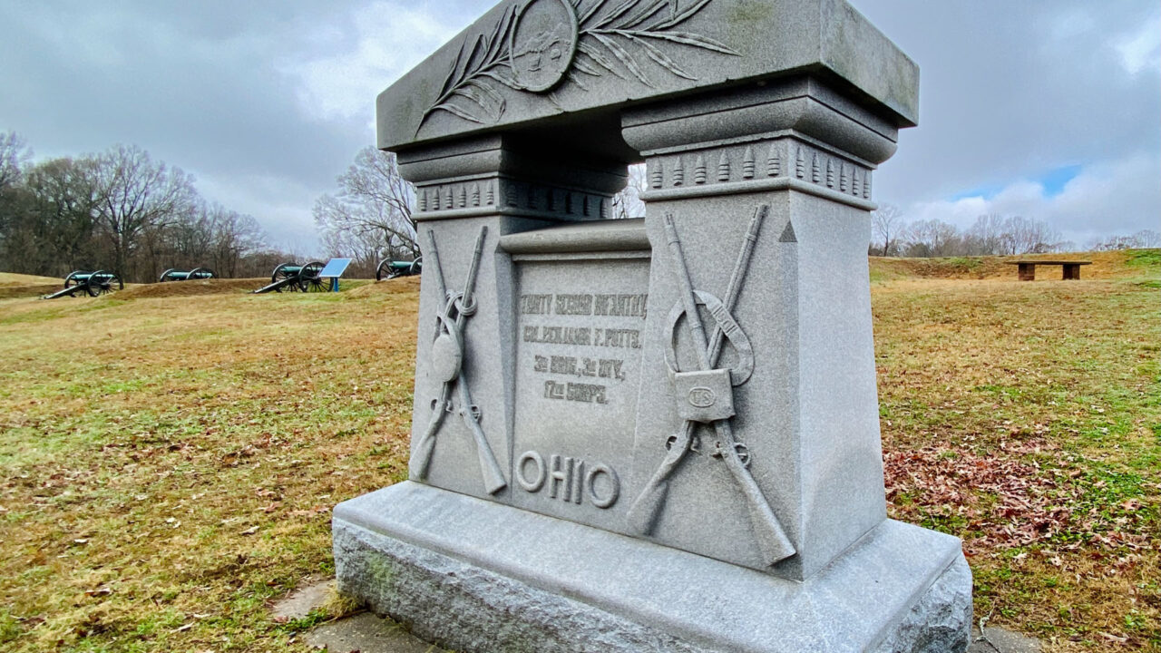 The 16-mile park tour road travels first through the Union assault and siege locations, and then along the Confederate defensive lines. When the park was under construction, veterans helped to mark the park’s battlefield lines, resulting in its recognition as one of the world’s most accurately marked battlefields. The park includes 144 cannons and more than 1,300 sculptures, monuments, markers, and tablets commemorating the individuals, units and events. It is one of “the largest collection of outdoor sculpture in the country.” Soldiers from 28 states fought in the campaign and siege of 1863. Nearly all of those states have erected monuments in the park to honor the men who served, including…
