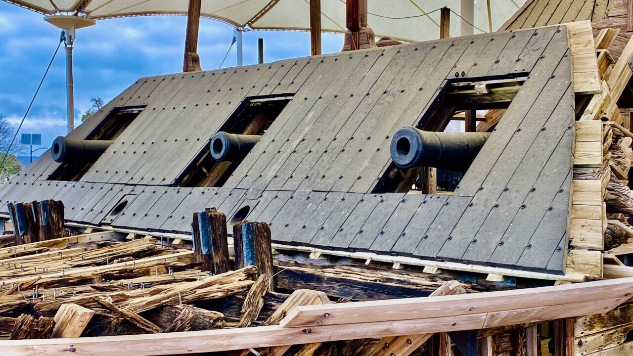 The Military Park is also home to the USS Cairo Gunboat (pronounced kay-roe). It’s the last surviving iron-clad gunboat in the world – 176 men called it home during the Vicksburg Campaign. It was 1 of 7 ironclads built in 100 days at an approx. cost of $100,000 each. James B. Eads, the greatest engineer of his time, convinced the Union that the way to win the war was to control the Mississippi River then proceeded to build all 7 ironclads. USS Cairo was sunk by torpedoes in 36 ft of water in 12 minutes on Dec. 12, 1862 but with no loss of life. The men were picked up from the water by nearby ships. The USS Cairo was raised from the Yazoo River in 1964 and is displayed with its original cannon, boilers, engines, hull and armor. Amazing.