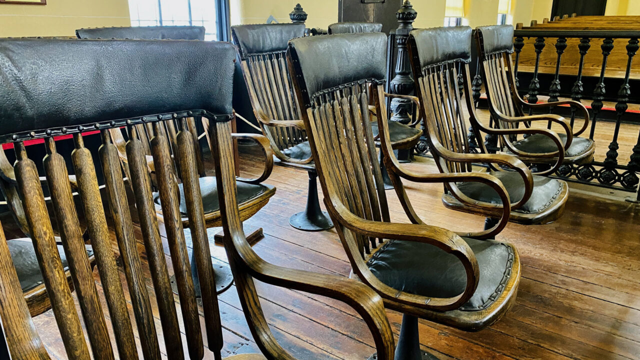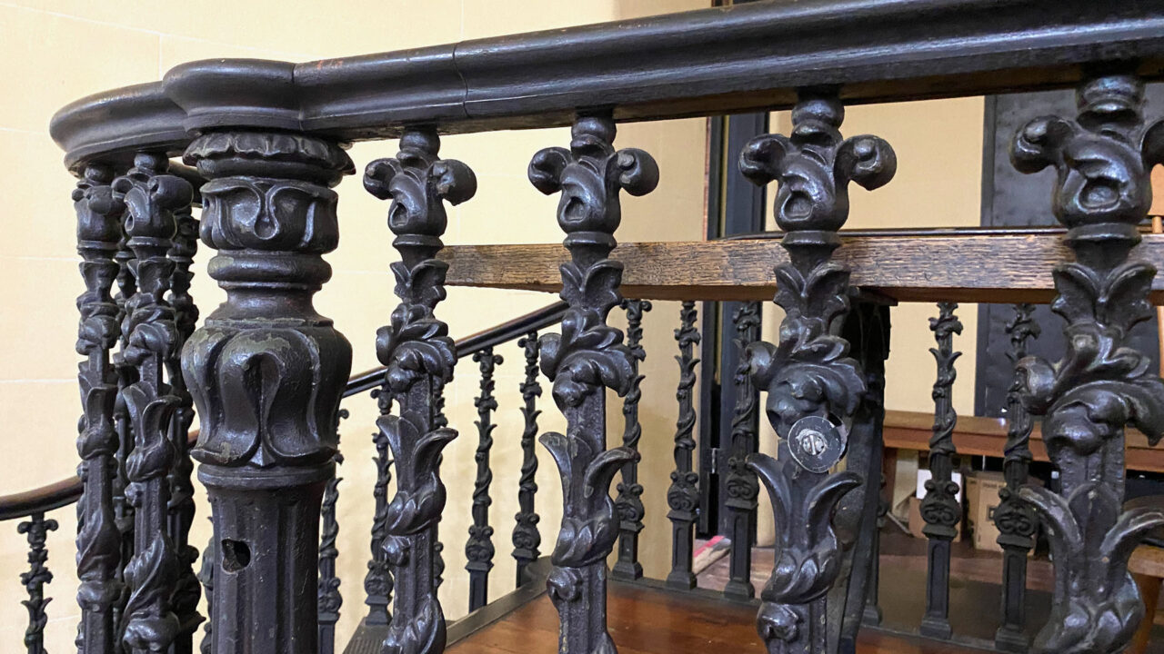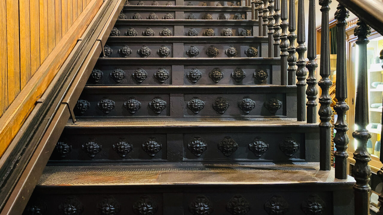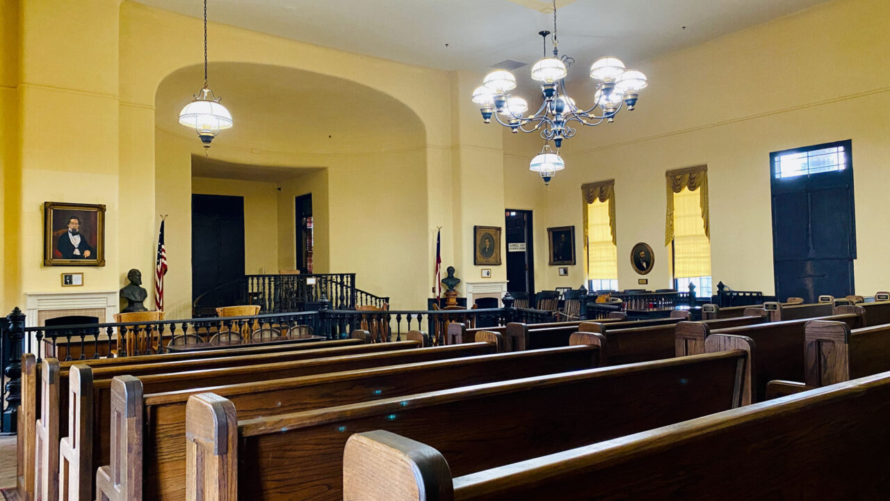 First is the Old Court House Museum, built in 1858. It’s Vicksburg’s most historic building and oldest museum. The court house still retains the original historic courtroom from 1859 with its original ironwork including the iron judge’s dais and railings. The color of the room is authentic, but theatre seat benches and risers were added in late 1800s. There’s an Iron Staircase connecting the first and second floors made by Baker Iron Company from Cincinnati, Ohio and brought by steamboat down the Mississippi River in the late 1850s. On the day Vicksburg surrendered, Union soldiers flocked into the building, and a group of drunken staff officers climbed the stairway, singing and waving a captured flag. When one of them looked down and saw “Baker Iron Company, Cincinnati OH” on the stair, he cursed “The impudence of the people who thought they could whip the United States when they couldn’t even make their own stairs!”