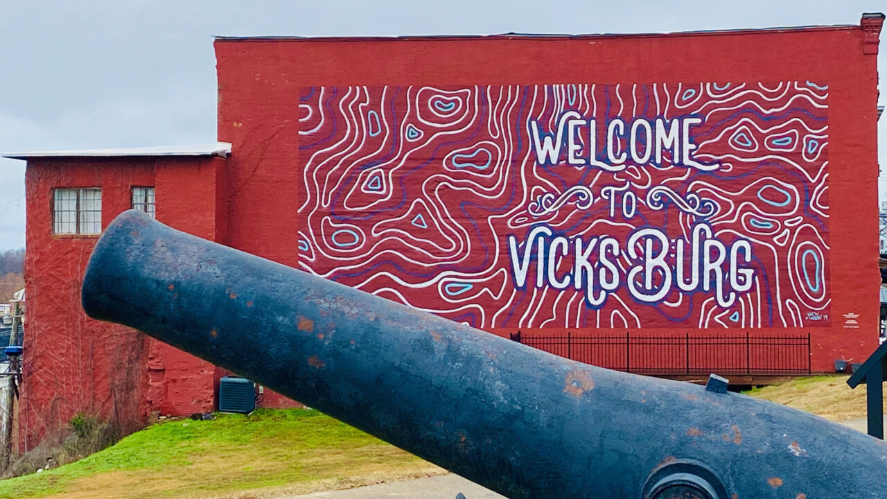On Sat., Jan. 27th, (2024) we visited downtown Vicksburg. It was a misty, chilly, gray day to explore. But we’re here for a limited time so we suck it up and go exploring!