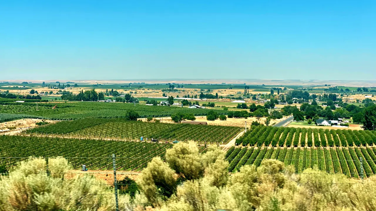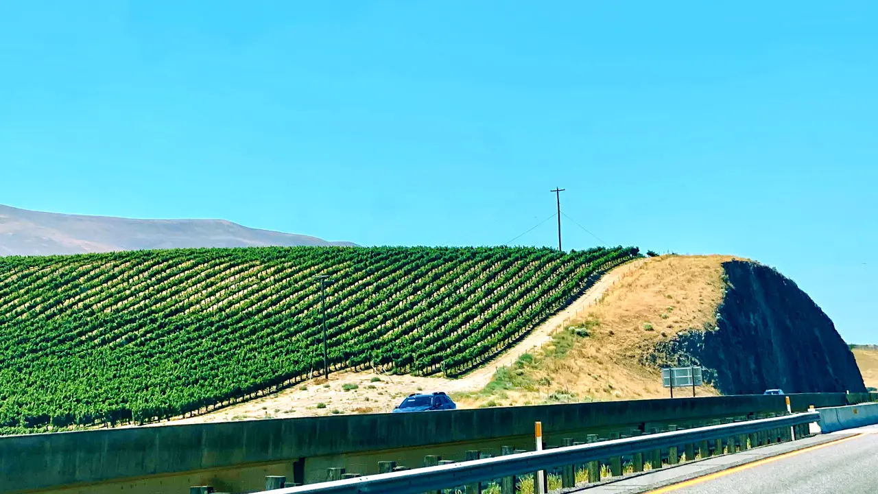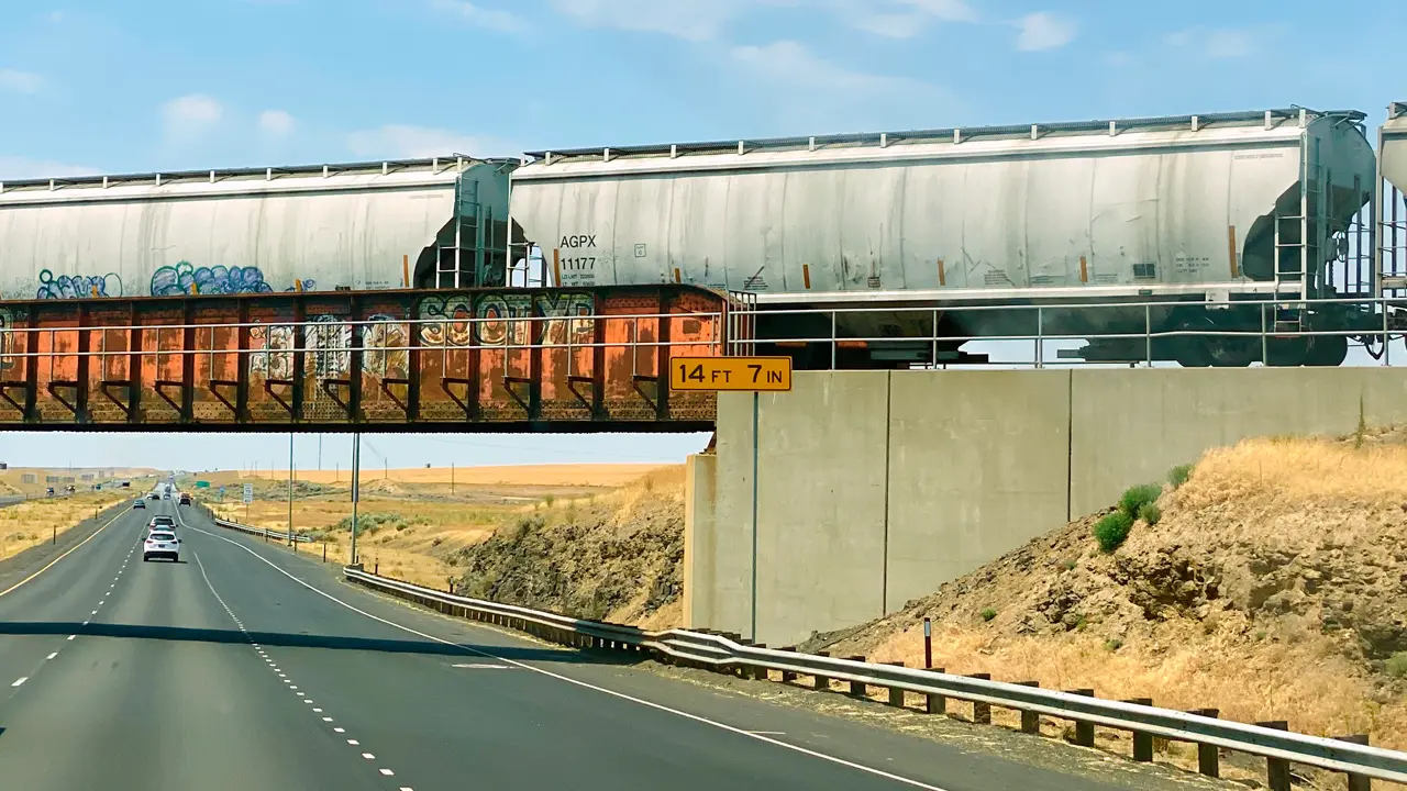 Washington is the #1 producer of apples, blueberries, hops, pears, spearmint oil and sweet cherries. Who knew?! We saw lots of irrigation happening in the fields along our drive, but we weren’t sure what crop had been planted. We also experienced the weird sensation of a train going over a bridge as we were passing under the bridge!