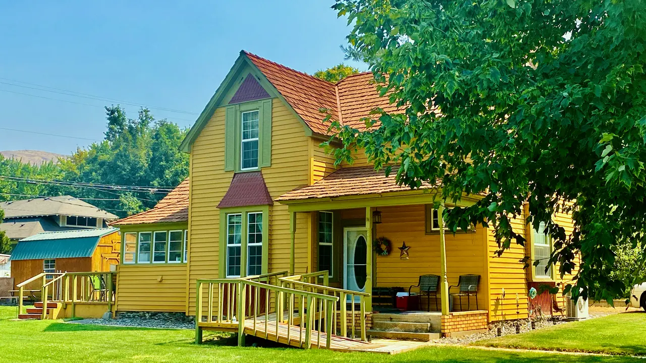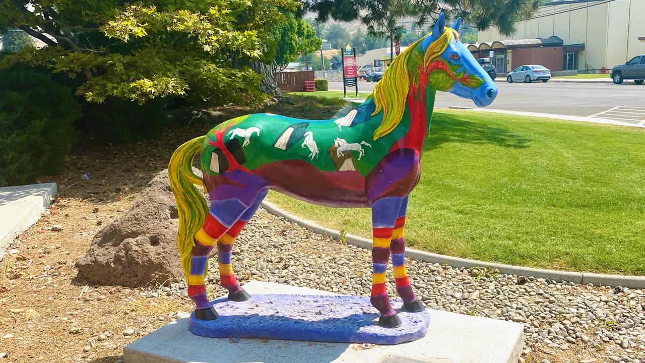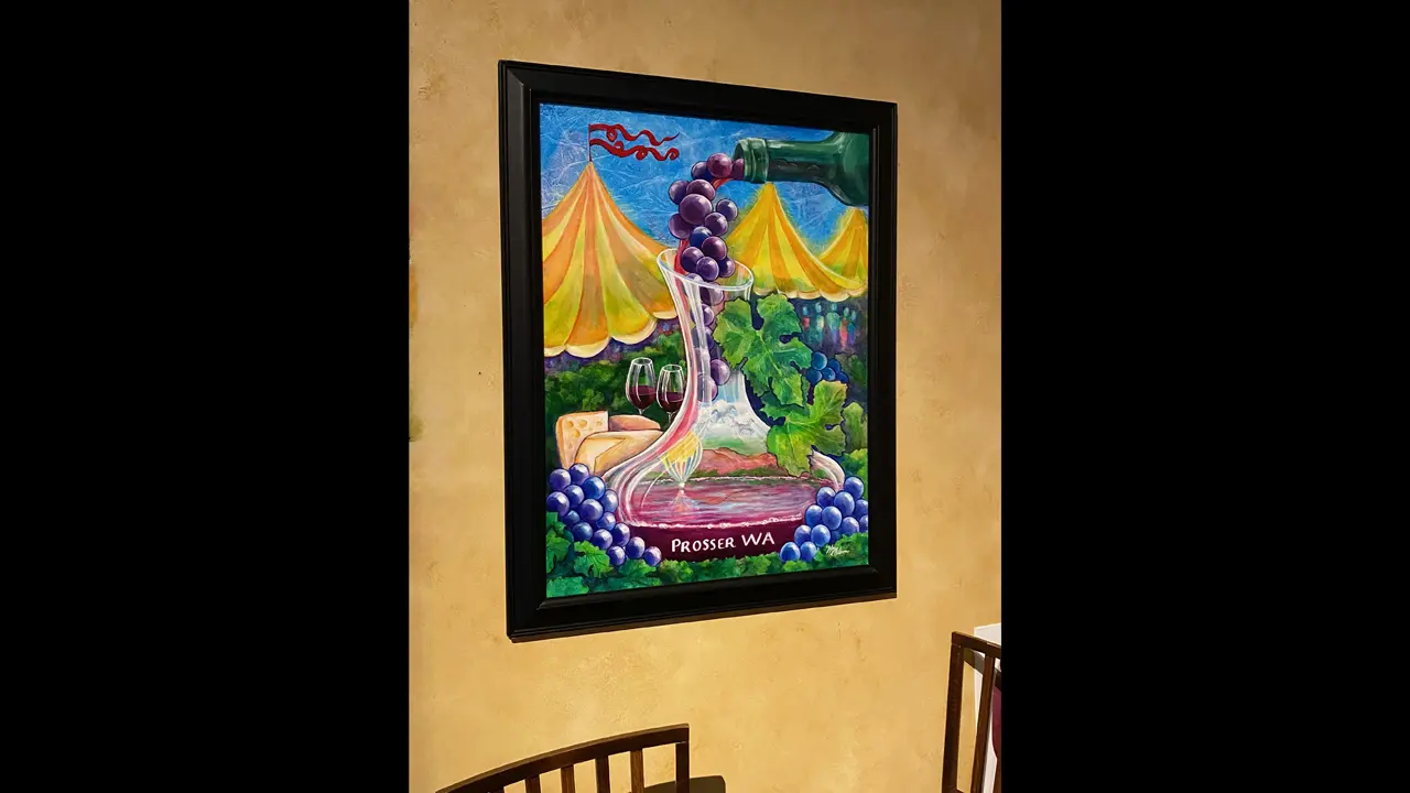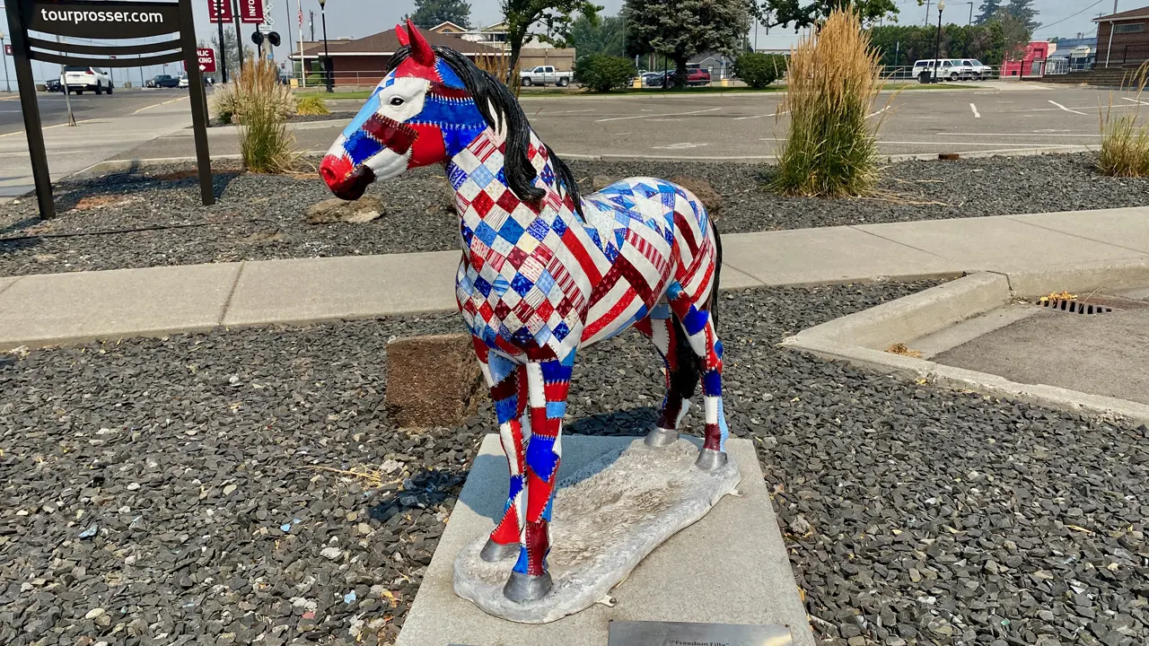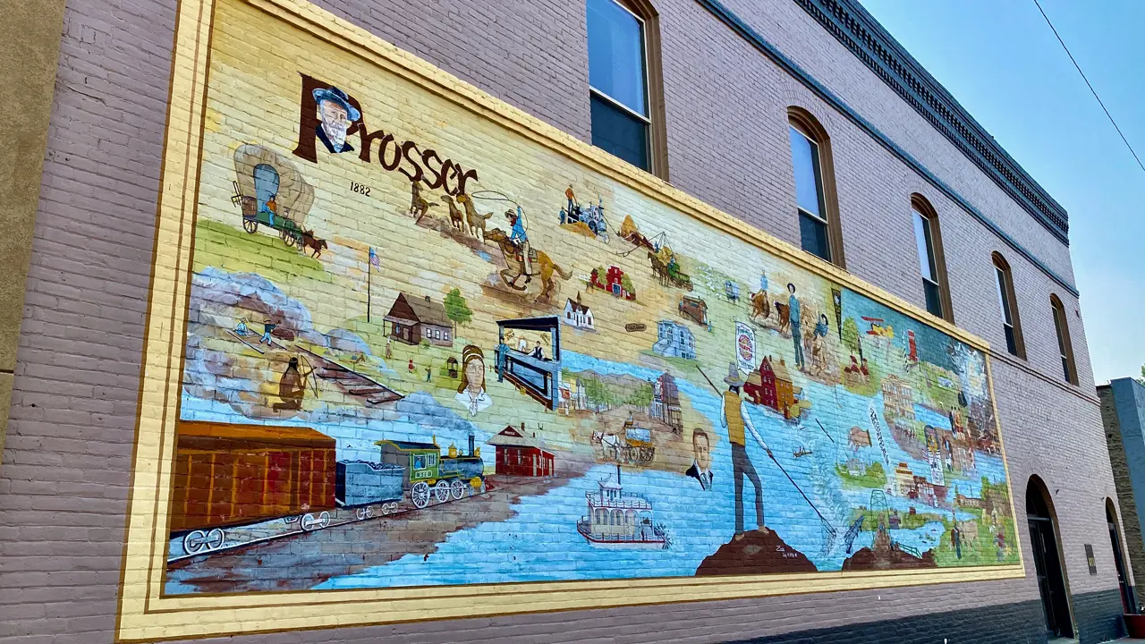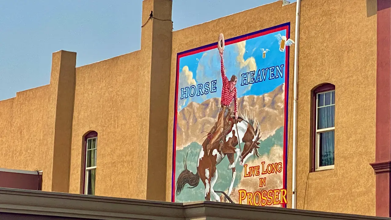 Prosser is a small town with a population of about 6,200. They have pint-sized colorful painted ponies all over town. We enjoyed a self-guided walking tour of historic downtown where we saw majestic trees, and old stately homes including the Harry Fisk home, built in 1907, made of Prosser Stone on the lower half. The stone came from a quarry at the base of Horse Heaven Hills. We also saw “Queen Anne Tower,” built circa 1905 with a “witch’s cap.” And a 1903 craftsman bungalow in the midst of getting an overhaul!