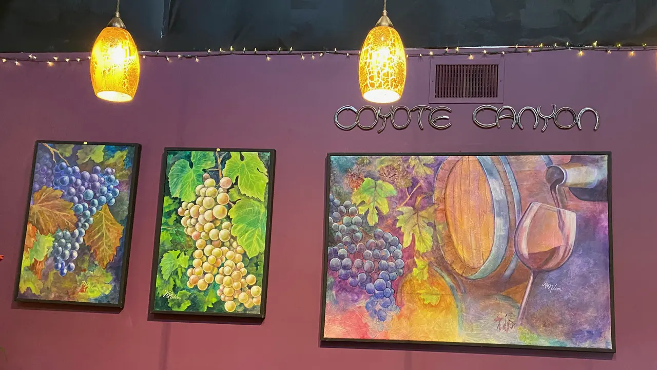 We visited a farmer’s market on Saturday morning, and then enjoyed music at a local winery, Coyote Canyon, Saturday night. We purchased 2 bottles of wine to enjoy with the music, and the Hannafords were able to get a little dancing in. The owner at Coyote Canyon Winery had her paintings turned into a series of labels for their wine. Such pretty labels. There was a second winery right next door to Coyote Canyon called Martinez & Martinez. Both wineries had lovely tasting rooms and seating areas. Unfortunately, we were not able to tour any actual wineries. They were all located out of town, and not promoting tours.