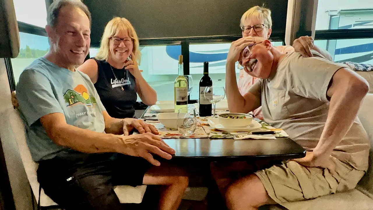 Because of the 100+ degree temps, we’ve spent a good portion of the week inside playing board games with Cheryl & Joe rather than venturing outside to do any exploring. We also enjoyed delicious pizza from the outdoor wood-fired pizza oven at the campground, got caught up on some projects around our tiny home, made some camping reservations for next year, and chatted with friends and family via phone. I also had an unexpected visit to an eye doctor after I started getting floaters and flashes. I was diagnosed with PVD… Posterior Vitreous Detachment. Apparently it’s not uncommon in our age group. Lovely. It could be way worse so we try and take these things in stride! I was told the flashes and floaters will quiet down.